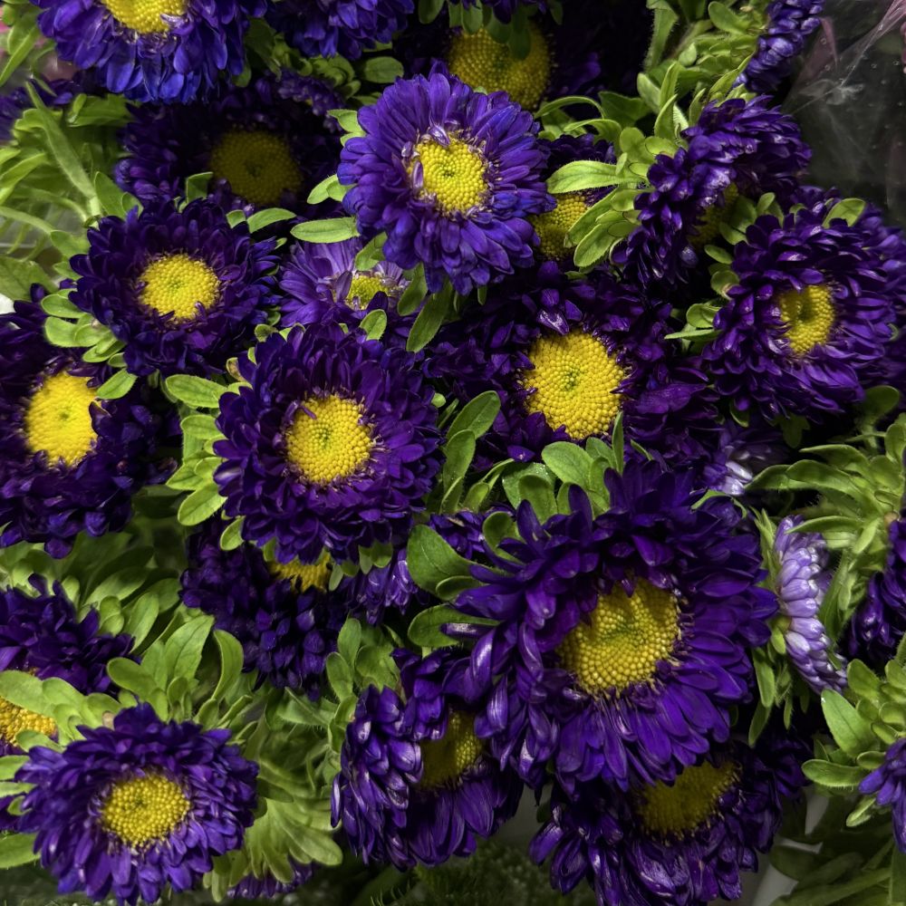 Matsumoto asters have some unique characteristics. This purple aster has a yellow center. Grower’s bunch contains 5 stems.
