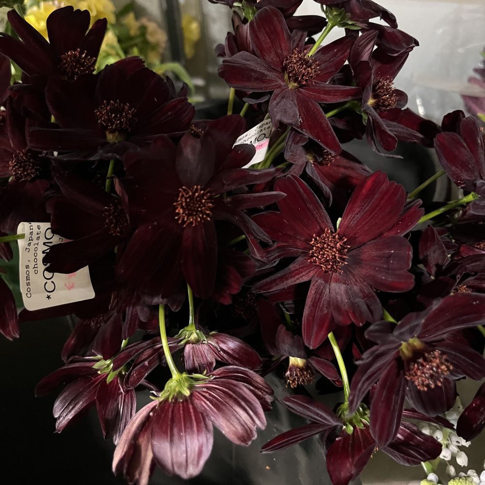 NEW!! Chocolate Japanese Cosmos are stunning! There are 10 stems in a bunch and the stems are 10-12″ tall. Availability is limited.