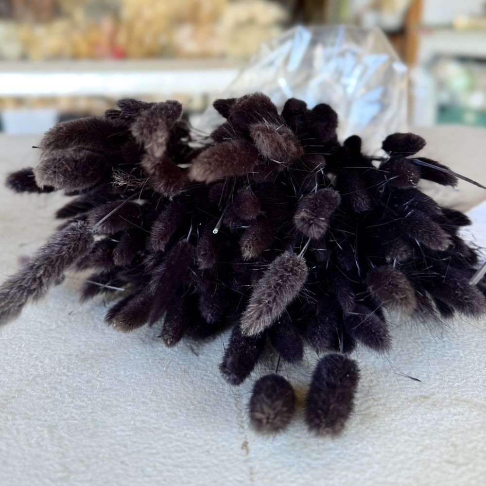 Dried black bunny tails are available year-round. They are a trendy item to compliment dried flower arrangements and fresh floral designs. The grower’s bunches are a very generous size.