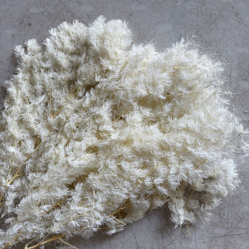 Dried bleached ming fern stems are approximately 24″ tall and are sold in 3-5 stem bunches.