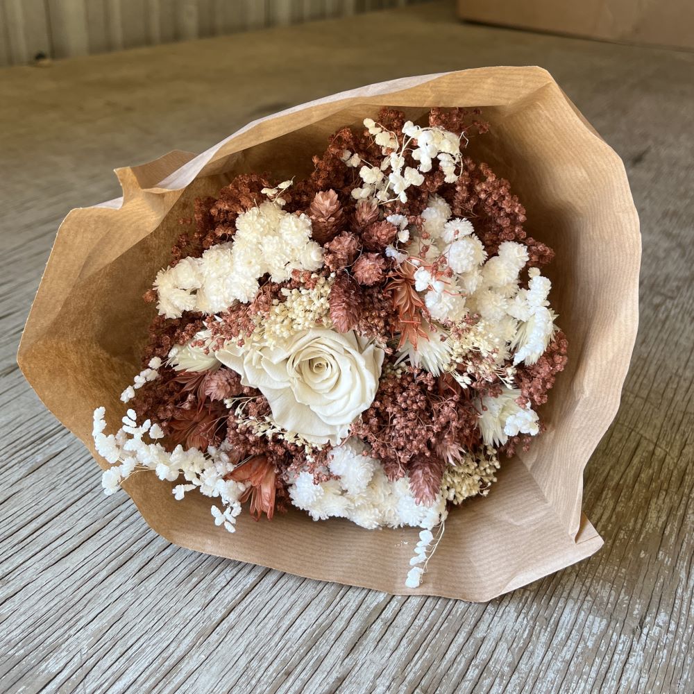 These beautiful Moka Mousse brown dried mixed bouquets include a lovely assortment of brown and Fall colored dried flowers.