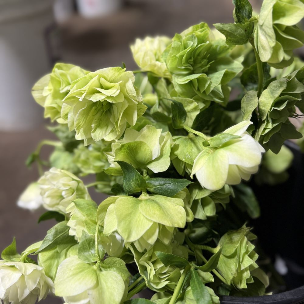 Double green Helleborus has a romantic look and is available in beautiful soft colors. Helleborus stems are approximately 10″ tall and there are 5 stems in a bunch.