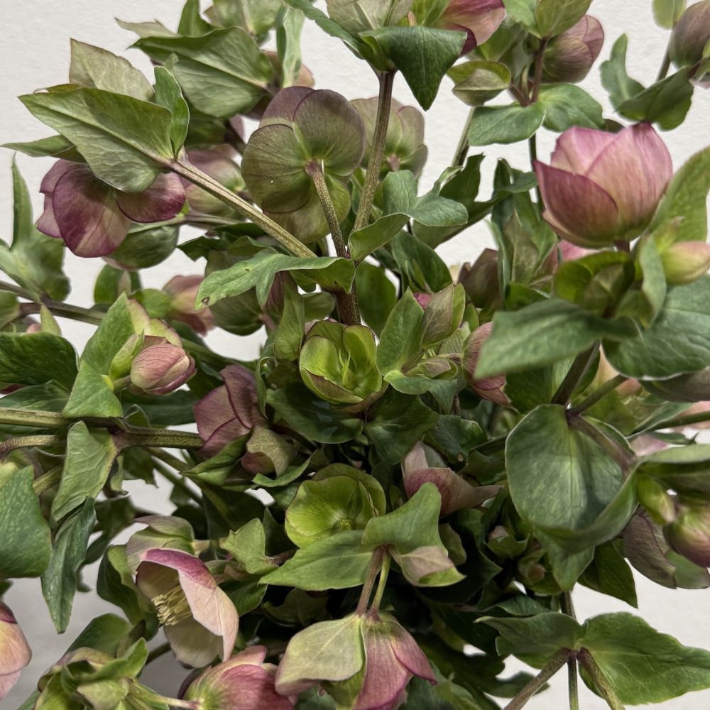 Pink helleborus has a romantic look and is available in beautiful soft colors. Helleborus stems are approximately 10-12″ tall and there are 5 stems in a bunch.