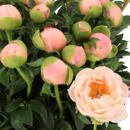 Peach Kings Day peonies have 5 stems per bunch. Please order in advance, this color can be limited.