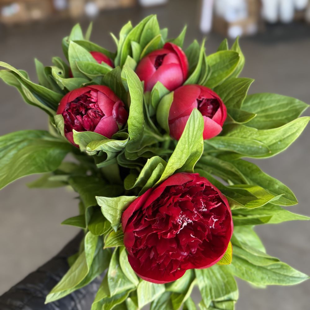 Red Charm peonies have large flowers, pretty foliage, and a nice fragrance. Chile, New Zealand, Holland and Israel. Peonies are always in demand and prices will vary throughout the year. Order your peonies in a few days before you plan to use them (in the winter it makes take longer for the buds to open). In a cool, well ventilated place they hold up well. The stems are 12-18″ in length and come with 5 stems per bunch.