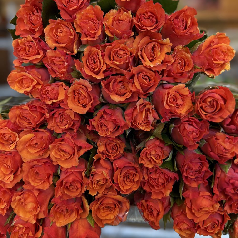 The California grown Milva rose offers a complex coloring – a lighter orange hue in the center with cherry tipped outer edges on the petals. Milva offers long and strong stems, a small to medium sized bloom and great vase life. Stem length is 40-50cm.