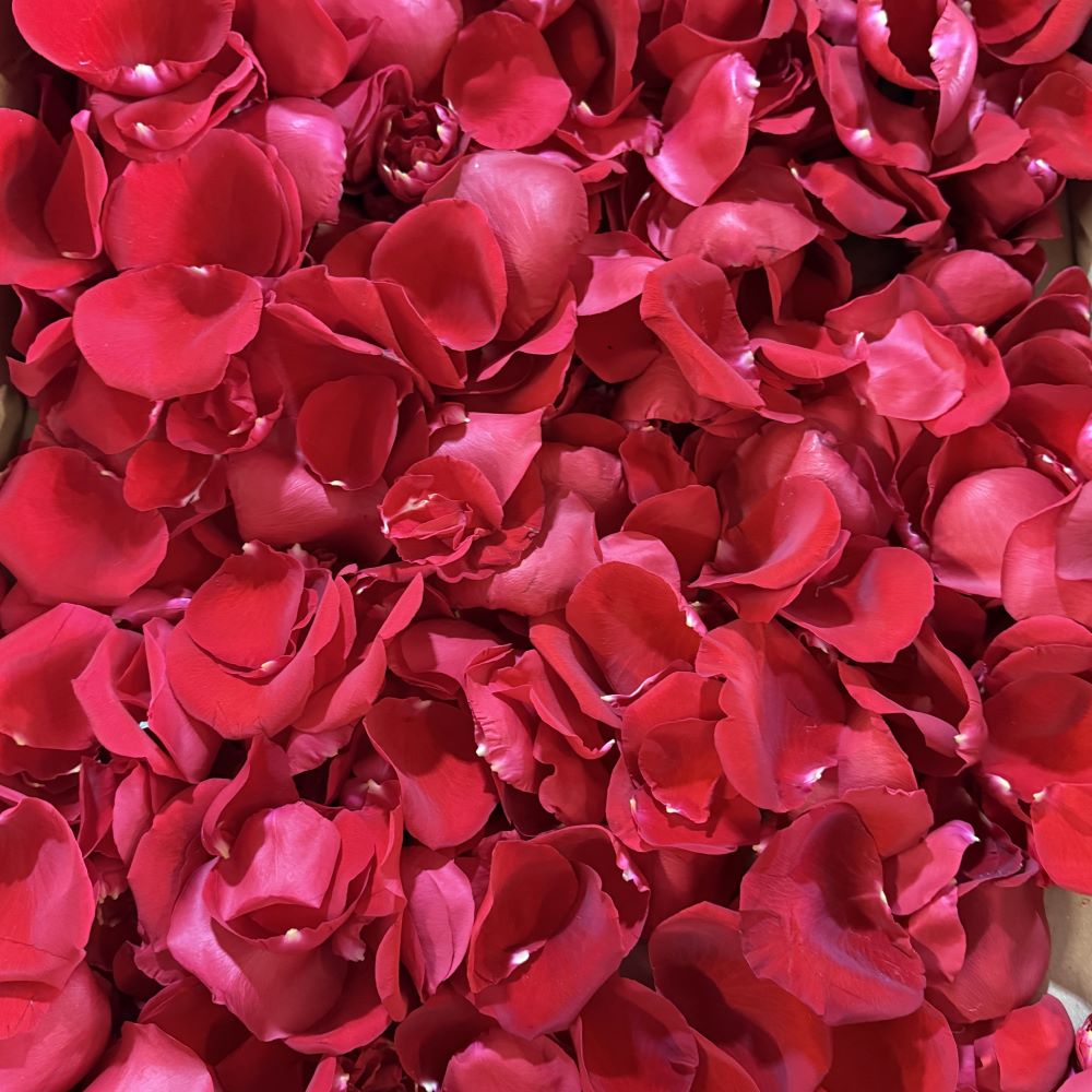 We custom make to order fresh red rose petal bags. We use our premium rose varieties with a high petal count which are fresh. We carefully hand make the rose petal bags at our facility in California. To ensure freshness best to have the petals arrive on a Thursday for a weekend event and keep the bag in a refrigerator. All of our rose petals are sustainably grown and available in a wide variety of colors to add elegance and romance to any occasion. Our rose petals bags contain 2-3000 petals per bag.