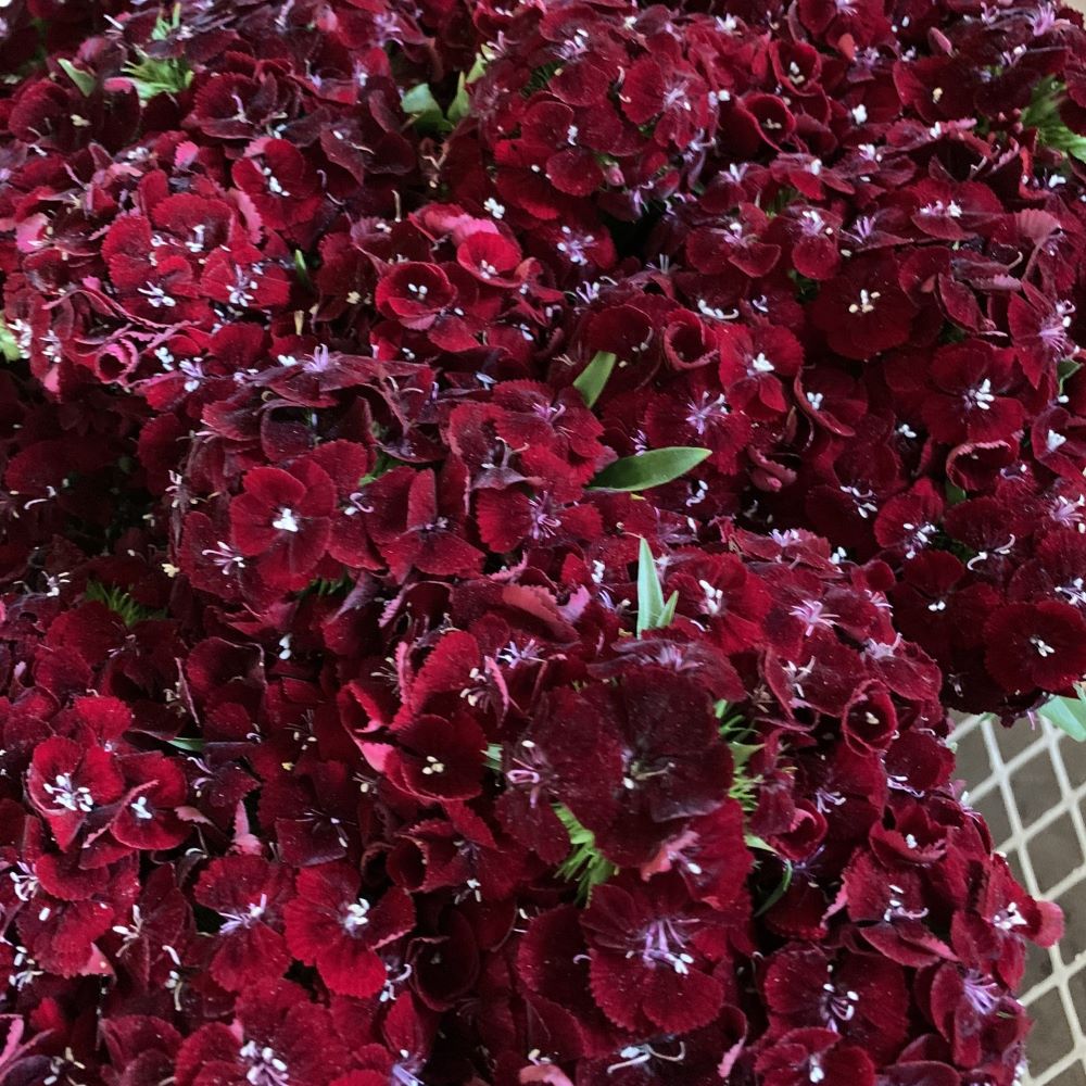 Sweet William is in the carnation family. These burgundy Sweet Williams are long-lasting, with a vase life of more than a week. These come in a 4-7 stem grower’s bunch.