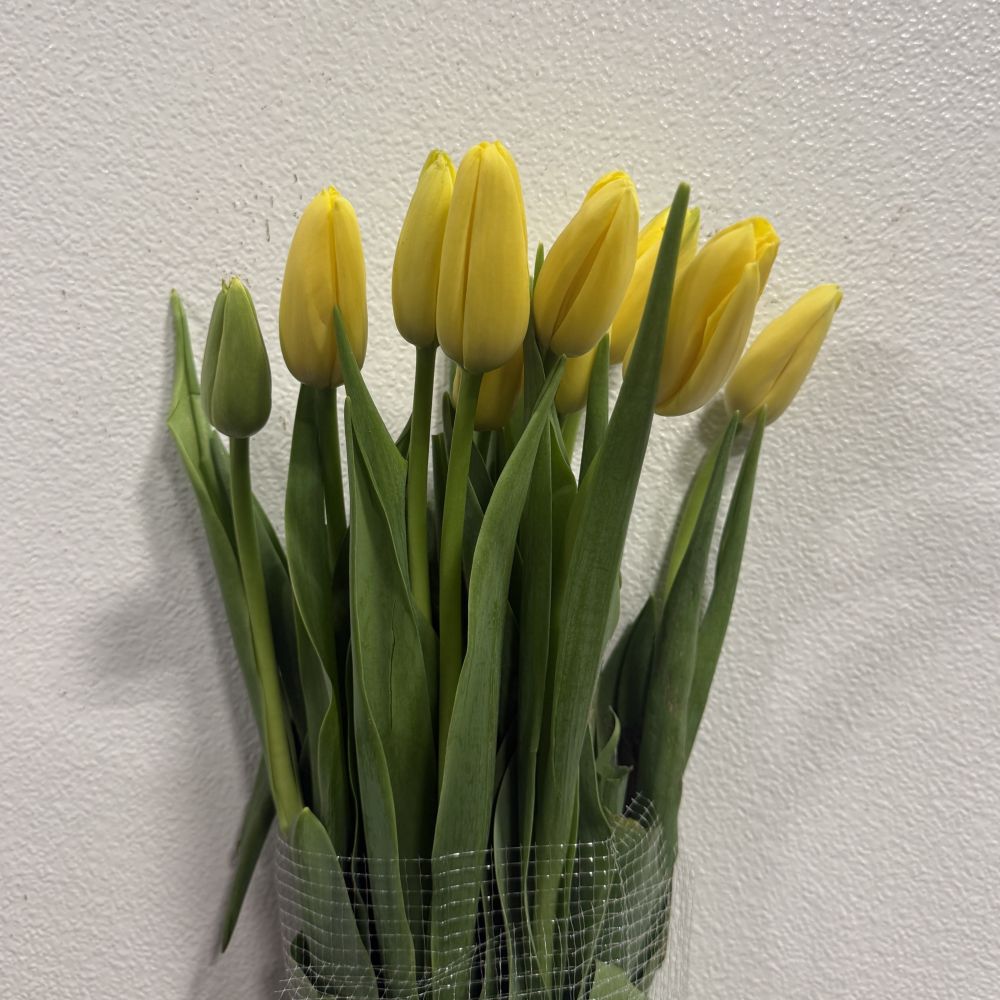 French yellow tulips are grown both in California and in Europe. French tulips have a larger flower head and longer stems than regular tulips. Stems are around 25″ long and they come in bunches of 10. Please order in advance.