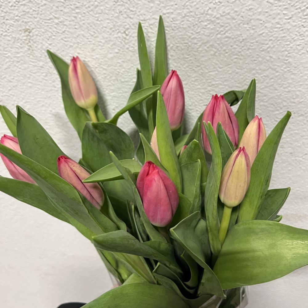 Hot pink tulips are great to use in a vase or a bouquet and are often combined with other spring flowers. Tulips are available year-round, however the best time is October through June.