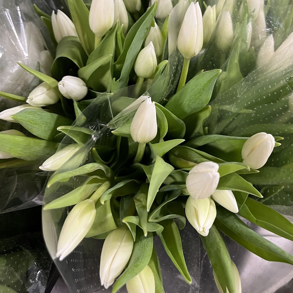 White tulips are great to use in a vase or a bouquet and are often combined with other spring flowers. Tulips are available year-round, however the best time is October through June. 10 stems per bunch.
